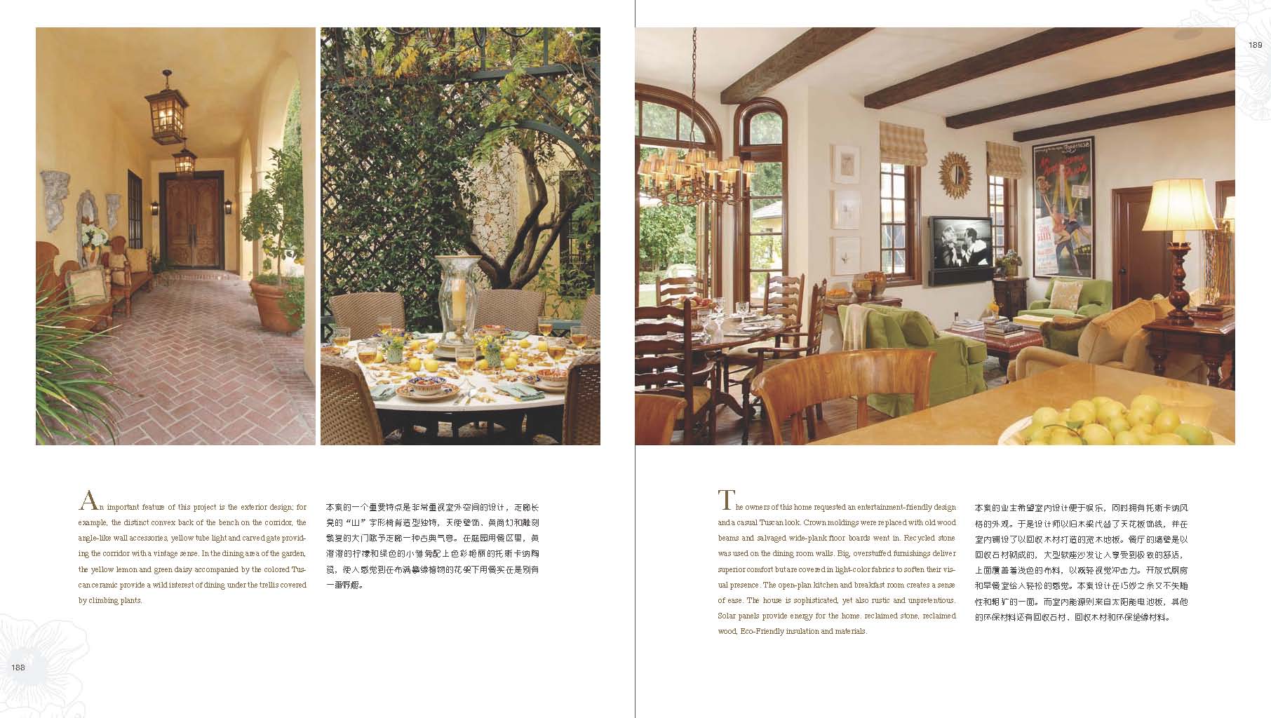 就室內(nèi)設(shè)計而言,《戀戀鄉(xiāng)村風(fēng)》為我們描摹一個美好而詩意的生活空間。本書收集了幾十個來自歐美的鄉(xiāng)村風(fēng)格案例,其中不乏像Timothy Corrigan、Jamie Drake和Kelley Proxmire這樣知名的設(shè)計師和獲獎大戶,案例均為原汁原味的鄉(xiāng)村風(fēng)格別墅和豪宅,裝飾細(xì)節(jié)多而且精細(xì),參考價值極高。另一方面,本書按照“英式鄉(xiāng)村”、“美式鄉(xiāng)村”、“法式鄉(xiāng)村”和“現(xiàn)代鄉(xiāng)村”四個風(fēng)格的分支制作了案例風(fēng)格索引,并且每個案例都有特征說明,讀者可以通過索引查閱自己需要的風(fēng)格樣式,更加具體地了解項目風(fēng)格及特色。