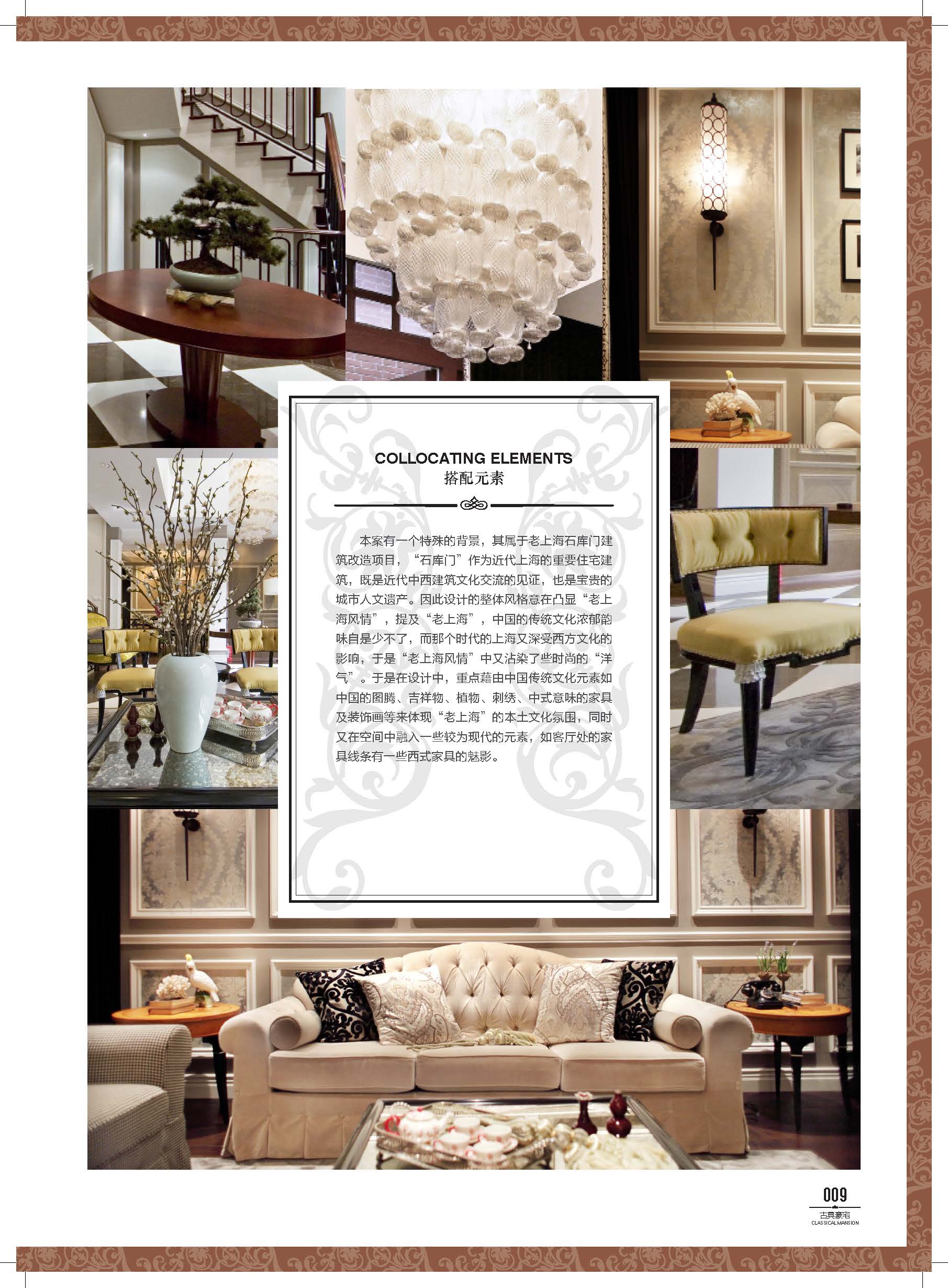 本案有一個(gè)特殊的背景,其屬于老上海石庫門建筑改造項(xiàng)目,“石庫門”作為近代上海的重要住宅建筑,既是近代中西建筑文化交流的見證,也是寶貴的城市人文遺產(chǎn)。因此設(shè)計(jì)的整體風(fēng)格意在凸顯“老上海風(fēng)情”,提及“老上?!?,中國(guó)的傳統(tǒng)文化濃郁韻味自是少不了,而那個(gè)時(shí)代的上海又深受西方文化的影響,于是“老上海風(fēng)情”中又沾染了些時(shí)尚的“洋氣”。于是在設(shè)計(jì)中,重點(diǎn)藉由中國(guó)傳統(tǒng)文化元素如中國(guó)的圖騰、吉祥物、植物、刺繡、中式意味的家具及裝飾畫等來體現(xiàn)“老上海”的本土文化氛圍,同時(shí)又在空間中融入一些較為現(xiàn)代的元素,如客廳處的家具線條有一些西式家具的魅影。