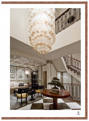 Portman house是一個(gè)關(guān)于老上海石庫門建筑改造的項(xiàng)目,因此整體設(shè)計(jì)風(fēng)格彰顯中式老上海風(fēng)。為傳遞給客人賓至如歸的感受,大堂整體設(shè)計(jì)為一個(gè)客廳的布局形式。在客廳的中央,布置了可供休憩的沙發(fā)。在背景處,通過投影設(shè)備播放著充滿無限變化且具有中國(guó)意境的圖案,使整個(gè)空間靜中有動(dòng)。客廳的設(shè)計(jì)中運(yùn)用了鮮明的黑白對(duì)比手法,頂棚將白色的空鏡框作為修飾,吊頂則保留上海老建筑原有的自然原木色,無疑是對(duì)老上海滄桑和歷史感的一種詮釋與傳承??蛷d通過素雅的家具配置及色彩搭配,凝練出一種時(shí)光中的靜謐感;而餐廳處則透過中式特有的文化意象展現(xiàn)中國(guó)傳統(tǒng)文化之大美,無不體現(xiàn)出居者的修養(yǎng)與品位。