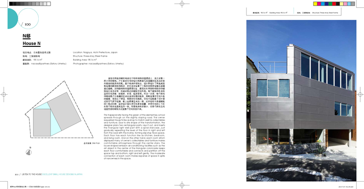 《聆聽(tīng)居住之美——日本小住宅設(shè)計(jì)》中日本小住宅受限于面積,地塊的“小”給設(shè)計(jì)師設(shè)置了很多限制性條件,類似于體育比賽的規(guī)則。不規(guī)則的地塊、窄小的入口、鄰近周邊建筑等。問(wèn)題的核心在于如何在遵守規(guī)則的前提下,開(kāi)展創(chuàng)造性的工作。如果可以積極對(duì)待這些規(guī)則,那么就可以為其所用。相比沒(méi)有任何規(guī)則,設(shè)計(jì)師們反而可以打造出更為出色的建筑設(shè)計(jì)。