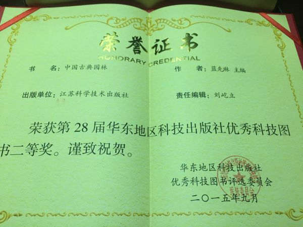 《中國(guó)古典園林》榮獲第28屆華東地區(qū)科技出版社優(yōu)秀科技圖書(shū)二等獎(jiǎng)