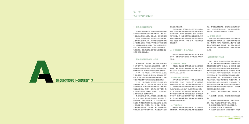 2.有大量歷年考研真題講解,結合海上藝號學員考研高分作品的列舉與點評,緊密結合考試實際,是備考景觀、風景園林等專業(yè)研究生入學快題考試的必備輔導教材。