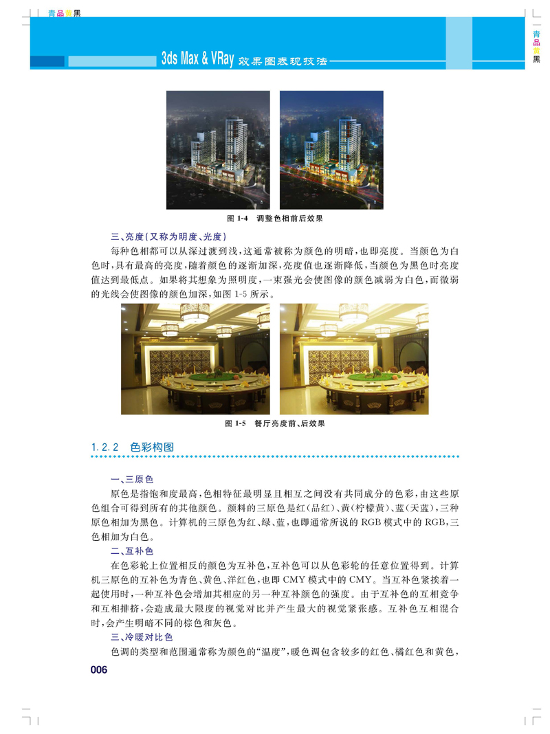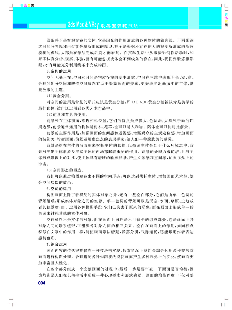 《3ds Max&VRay效果圖表現(xiàn)技法》包括了不同類型的室內(nèi)空間表現(xiàn),有家裝空間,如客廳、書房、臥室、衛(wèi)生間等;有工裝空間,如接待室、售樓大廳、走廊等;還有3個典型的室外效果圖表現(xiàn)等。通過學習不同空間、不同氣氛的表現(xiàn)方法,以及不同材質(zhì)的設(shè)置技巧,不同的布光思路和創(chuàng)建流程,讀者可以全面提高室內(nèi)外空間表現(xiàn)功底與水平,輕松制作出照片級別的三維作品。