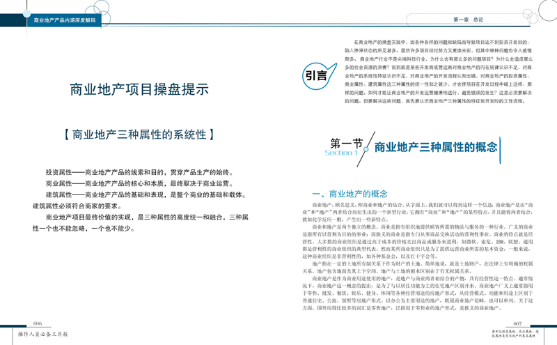 1. 本書(shū)突破傳統(tǒng)地產(chǎn)開(kāi)發(fā)思路的局限,首次提出商業(yè)地產(chǎn)三種屬性這一觀點(diǎn),并以此展開(kāi)闡述,題材新穎而不落俗套。