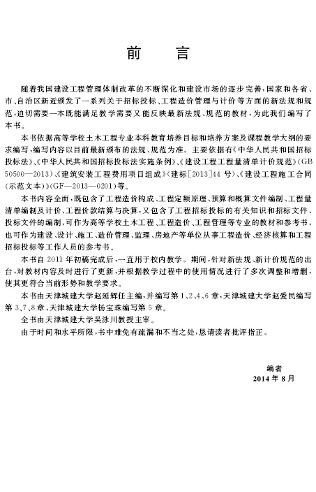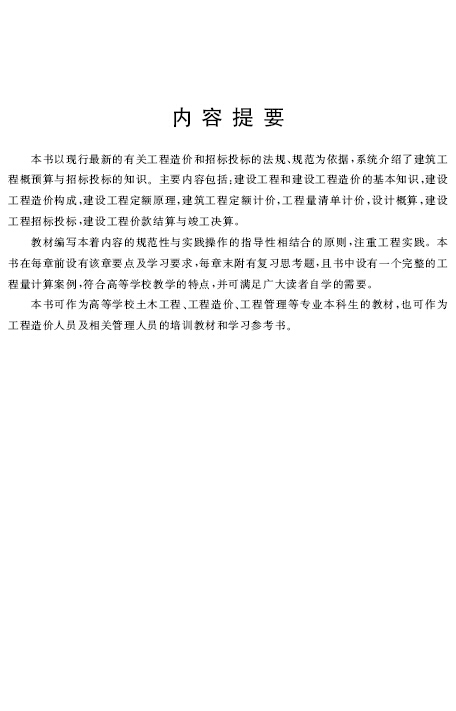 本書可作為高等學校土木工程、工程造價、工程管理等專業(yè)本科生的教材,也可作為工程造價人員及相關管理人員的培訓教材和學習參考書。