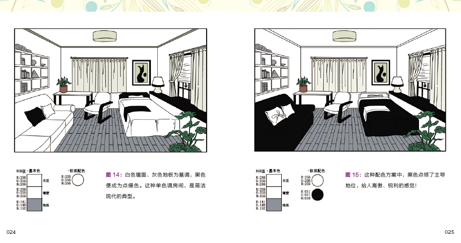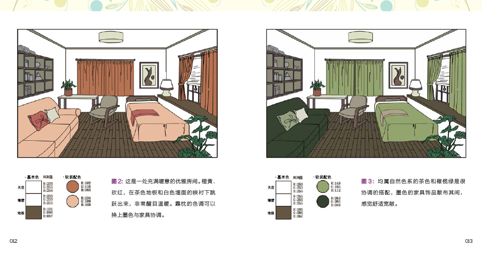 1.以插圖形式展現(xiàn)空間配色,直觀明了。