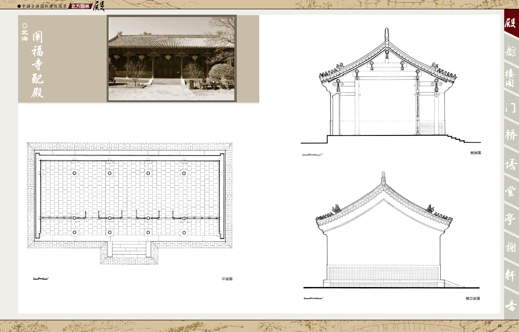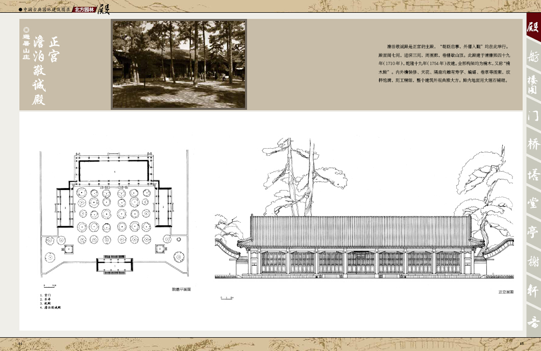 本書包含北方著名古典園林中的殿、舫、樓閣、門、橋、塔、堂、亭、榭、軒、齋十一大類園林建筑的全面展示,每一大類前有文章講解和描述,每一類中的每座建筑含有建筑測(cè)繪圖紙和照片,細(xì)部展示豐富具體,展示國內(nèi)經(jīng)典園林建筑的設(shè)計(jì)和構(gòu)造,為園林建筑設(shè)計(jì)師提供大量參考和學(xué)習(xí)的樣本。