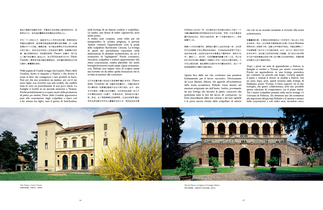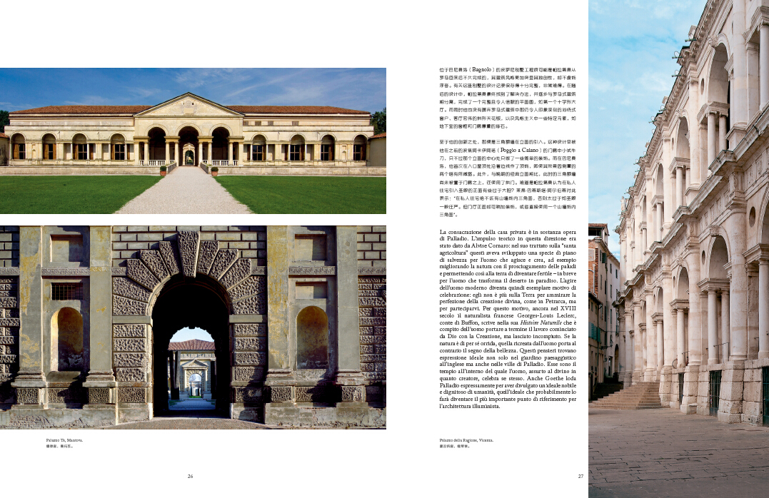 本書原由意大利Scripta Maneant出版,主要通過作者克里斯托夫·烏爾默(Cristoph Ulmer)教授的細(xì)致指引,配合精美的圖片展示以及大量的文字說明,講述了文藝復(fù)興時期著名建筑大師安德烈亞·帕拉第奧(Andrea Palladio)的柱式設(shè)計理論和主要設(shè)計作品,包括圓廳別墅、奧林匹克劇場等,讓讀者可以近距離地觀察帕拉第奧的作品,此外,本書還詳細(xì)闡述了帕拉迪奧柱式設(shè)計理論對西方建筑藝術(shù)的巨大影響。