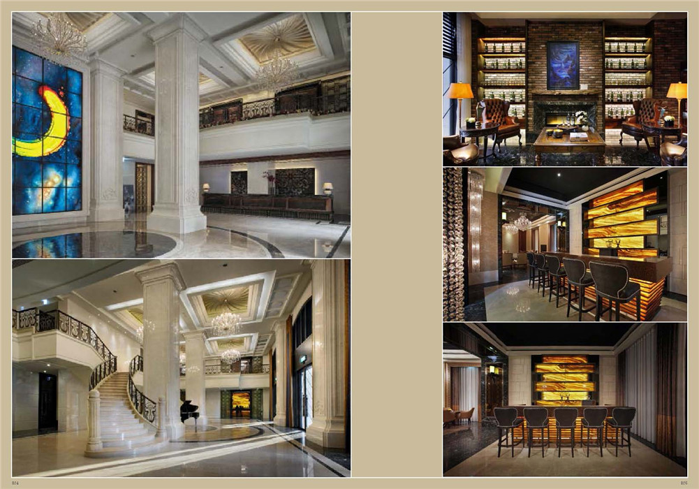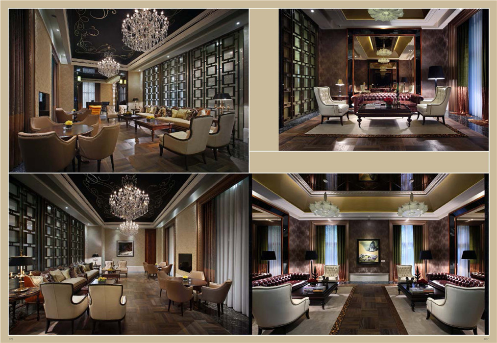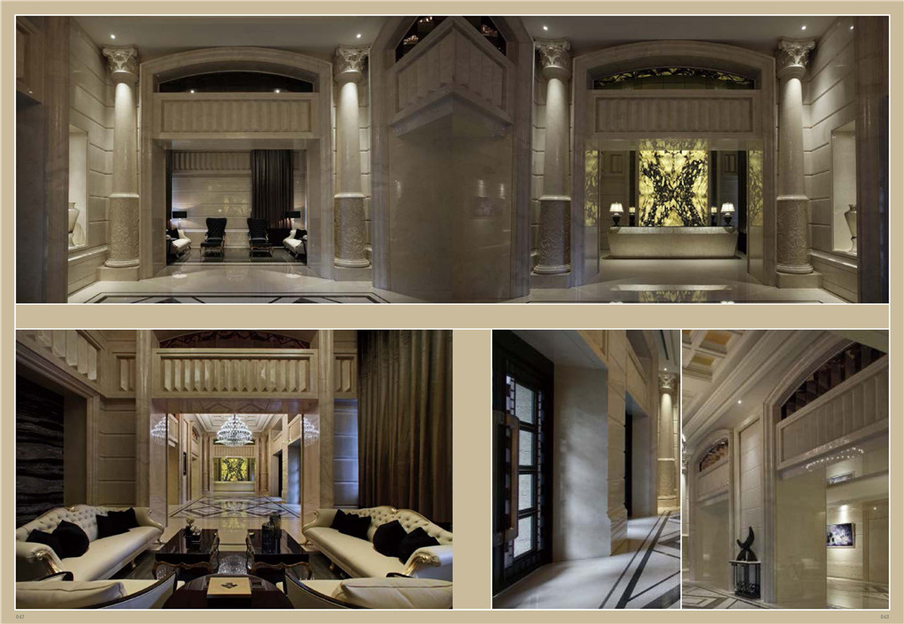 公共配套兼具公共建筑的公共功能,同時帶有一定的私密性。處理這一類較為特殊的空間,設(shè)計師應(yīng)具備整體風(fēng)格的控制能力,同時還必須有巨細無遺的完整細節(jié)構(gòu)思。設(shè)計師就像是藝術(shù)家,在展現(xiàn)個人才華和構(gòu)思的同時,盡一切可能滿足業(yè)主的意愿??臻g處理手法是變化多樣的,我認為,設(shè)計不能套公式。同一空間里存在不同的元素,它們相互影響,相互配合?!癴unction follows form”,即先考慮實用,再研究造型。設(shè)計師必須找出這兩者之間的平衡點,加以創(chuàng)造性地發(fā)揮,方能于協(xié)調(diào)中凸顯尊貴并成就永恒的唯一。