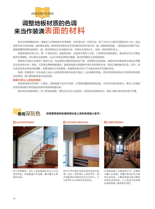01 從格局來思考內部裝潢,實現(xiàn)具有包容力的空間 /02 統(tǒng)一天花板的高度創(chuàng)造寬敞的氣氛 /03 調整地板材質的色調,