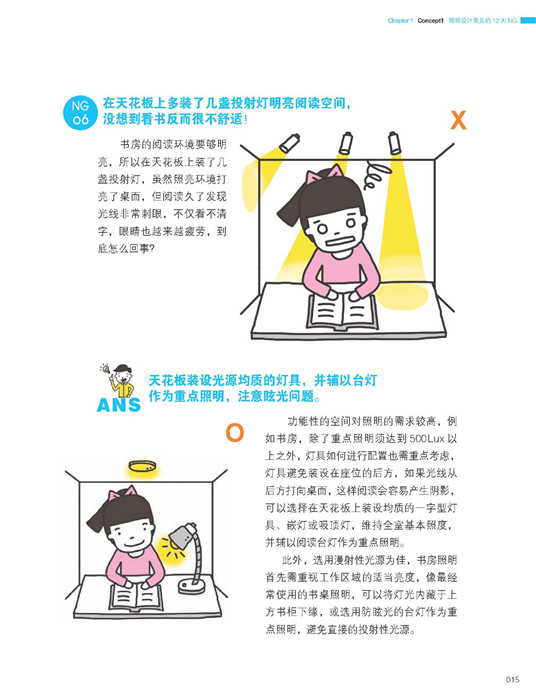 NG 06 在天花板上多裝了幾盞投射燈明亮閱讀空間,沒想到看書反而很不舒適!