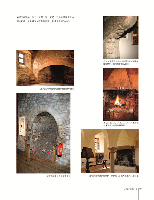 其一,盡可能地對(duì)龐雜的壁爐歷史和文化做整體、嚴(yán)謹(jǐn)?shù)氖崂砗腿∩?,重點(diǎn)從壁爐承載的文化價(jià)值、精神意義及美學(xué)價(jià)值著手,以期能夠幫助讀者整體地理解壁爐。