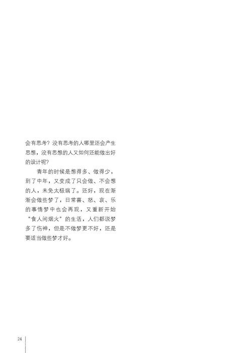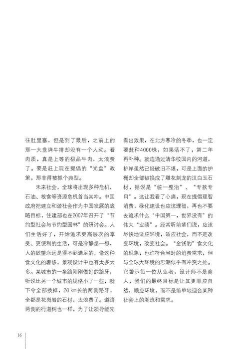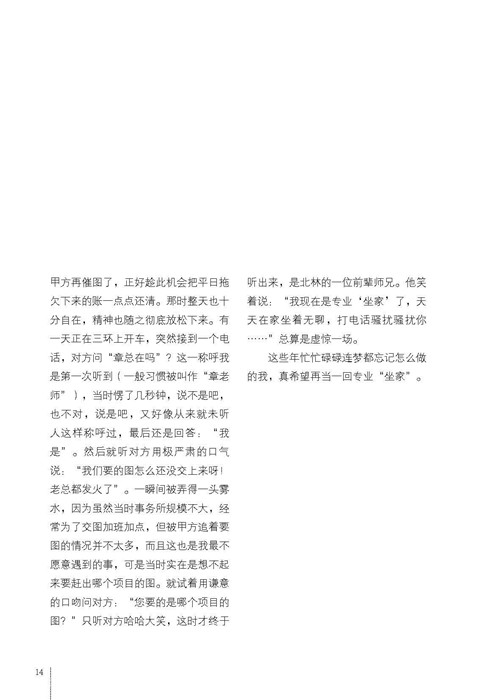 這里通過(guò)細(xì)小的環(huán)節(jié)敘述表達(dá)了這樣一種認(rèn)識(shí):設(shè)計(jì)并不像外界想象中的那么“高大上”,也沒(méi)有那么神秘和深?yuàn)W。只要每位設(shè)計(jì)師以最基本的職業(yè)道德去面對(duì)每天的工作,那一定可以在不會(huì)太久的未來(lái)成為一名“合格”的設(shè)計(jì)師,而合格的設(shè)計(jì)師做的項(xiàng)目也一定是合格的作品。這里面充滿了每位設(shè)計(jì)師的激情與恤憬、真實(shí)與執(zhí)著、忘我與追求……這些足以作為支撣一個(gè)好作品誕生最基本的,也是最重要的條件:如果設(shè)計(jì)師能素尚儉樸,同時(shí)又能高尚地、謙遜地生活,那么其作品被大家公認(rèn)為好作品的日子就不會(huì)太遠(yuǎn)了。