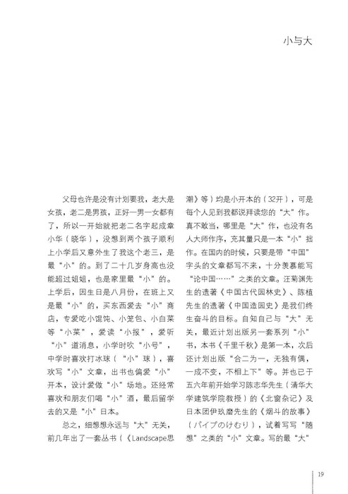 與之前所讀過(guò)章俊華老師的書(shū)相比,《千里千秋》除了能夠?qū)W習(xí)到專業(yè)知識(shí)外,還能給人帶來(lái)閱讀上的樂(lè)趣。書(shū)中輕松的語(yǔ)言、自嘲的名詞、藝術(shù)化的排版充分表現(xiàn)出作者現(xiàn)階段平和且低調(diào)的生活狀態(tài)。