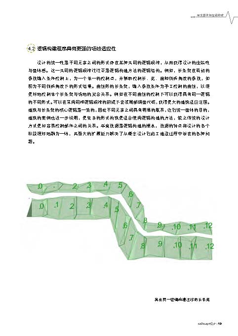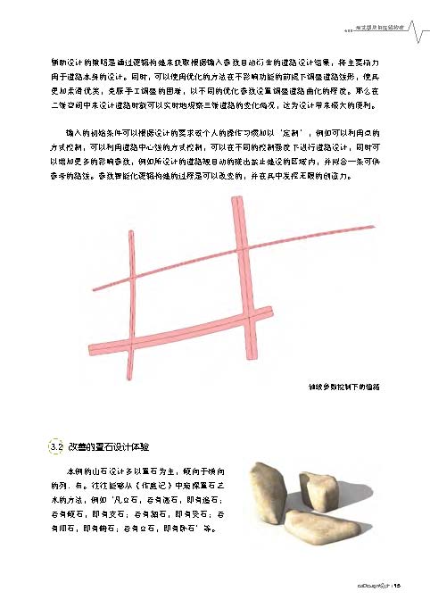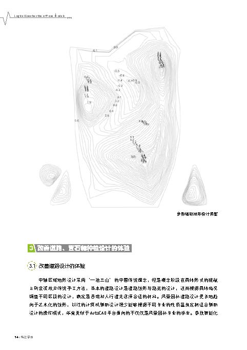 《編程景觀》提出了形式模塊邏輯構建的概念,強調(diào)設計師利用編程設計的思維建立適于設計師自身輔助設計的程序,例如通過建立改善地形設計、道路、種植和置石等程序,智能化解決設計的相關問題。
