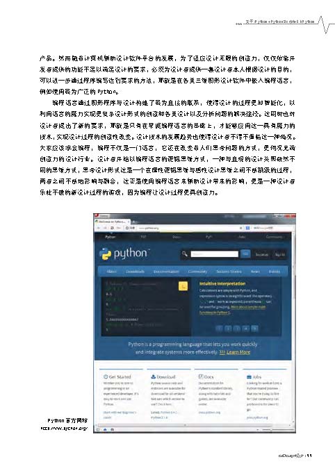 《學(xué)習PYTHON—做個有編程能力的設(shè)計師》從編程設(shè)計角度闡述利用Python腳本語言輔助設(shè)計的方法。在廣大設(shè)計師從來沒有想過設(shè)計行業(yè)與編程會發(fā)生關(guān)聯(lián)時,編程設(shè)計已經(jīng)對傳統(tǒng)設(shè)計方法產(chǎn)生了影響,甚至變革。編程語言通過圖形程序與設(shè)計構(gòu)建了最為直接的聯(lián)系,使得設(shè)計的過程更加智能化,利用語言的魔力實現(xiàn)更復(fù)雜設(shè)計形式的創(chuàng)造和解決各類設(shè)計以及分析的問題。