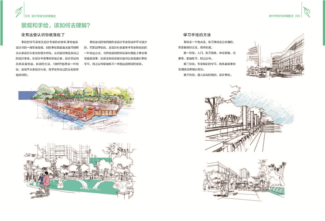 《設(shè)計(jì)手繪與景觀表達(dá)》從手繪規(guī)則的角度講解景觀設(shè)計(jì),其中詳盡地講解了設(shè)計(jì)與手繪的關(guān)系、理論是設(shè)計(jì)的基礎(chǔ)、景觀設(shè)計(jì)的章法、手繪工具的運(yùn)用等內(nèi)容,而在畫(huà)法上更是詳細(xì)地介紹了所用材料及景觀中喬木、人物、交通工具的畫(huà)法。書(shū)中不但詳盡的講解了手繪的基礎(chǔ)理論知識(shí),還結(jié)合當(dāng)下手繪行業(yè)的現(xiàn)狀,詳盡的闡述了學(xué)習(xí)手繪之后如何在工作中融會(huì)貫通并靈活運(yùn)用的方法,既有理論知識(shí)又有實(shí)踐經(jīng)驗(yàn)作為指導(dǎo),使全書(shū)內(nèi)容更加豐富、實(shí)用。