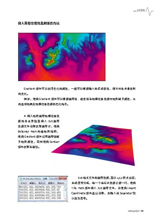 “基本參數(shù)”部分講述幾何體類型、數(shù)據(jù)類型和輸入類以及常用的工具,探索了地理信息高程數(shù)據(jù)調(diào)入的方法,基于遙感影像林地提取的方法,尤其通過Galapagos進化解算組件研究虹橋三桿系統(tǒng)和四桿系統(tǒng)的搭建模式;