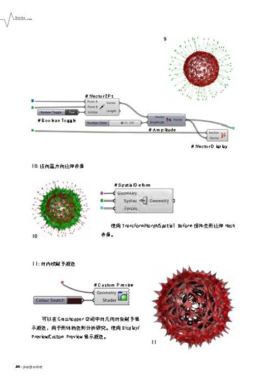 《參數(shù)模型構(gòu)建》中講述了幾乎所有的Grasshopper組件,并包含很多組件巧妙組合應(yīng)用的方法,以及相關(guān)實例。Grasshopper的基礎(chǔ)組件到Version August-27,2014,Build 0.9 0076時已達到700多個。面對這么多的組件,我們需要一本可供查詢的工具書,這就是本書編寫的主要目的。除了對幾乎所有組件的解釋可供設(shè)計師作為案頭查詢手冊,同時在內(nèi)容組織上通過針對性的實例強調(diào)組件的具體應(yīng)用方法,達到對組件熟練使用的目的。