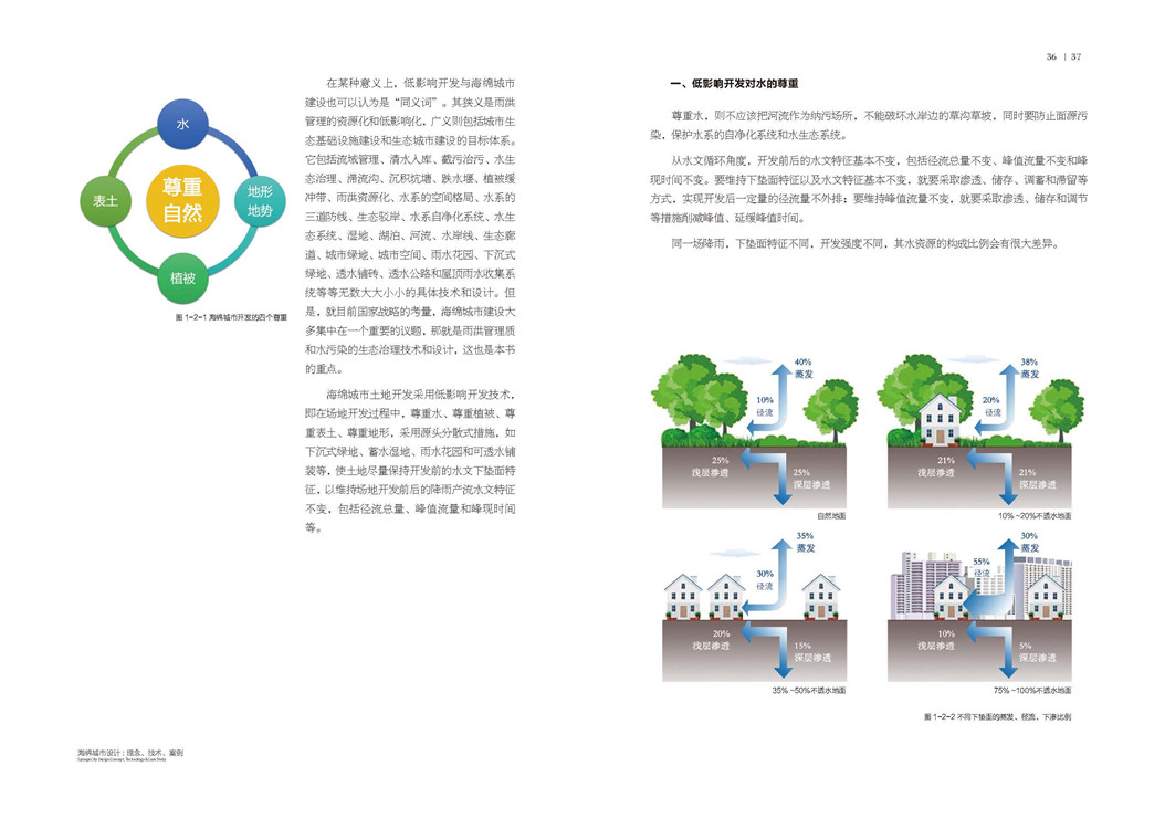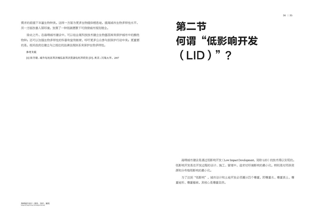 全書分為理念篇、技術(shù)篇和案例篇三大章,理念篇對于海綿城市、LID、海綿城市設(shè)計的定義與內(nèi)涵進(jìn)行了詳細(xì)介紹,技術(shù)篇介紹構(gòu)建海綿城市過程中涉及到的工程技術(shù)如雨洪資源化技術(shù)、水生態(tài)治理技術(shù)和綠色設(shè)計技術(shù)等,案例篇則收錄了其團(tuán)隊近年來八個海綿城市實(shí)踐項目,景觀項目類型豐富,包括了濕地設(shè)計、水庫設(shè)計、水生態(tài)治理及水系設(shè)計等海綿城市構(gòu)建聚焦的項目。