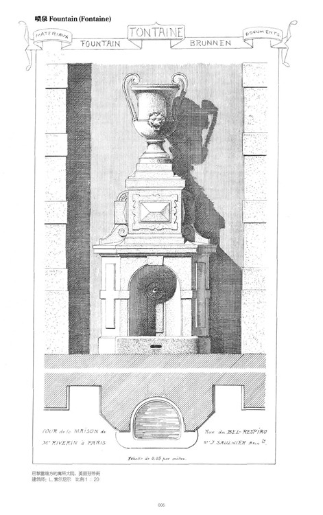 本書是本套匯編叢書的第6卷,收集了千張古典建筑與雕塑藝術(shù)珍貴的手繪資料,詳細(xì)分類包括了噴泉、框飾、回紋飾、鑲板雕帶、廊臺(tái)、嘎咕鬼、花葉邊飾以及門。