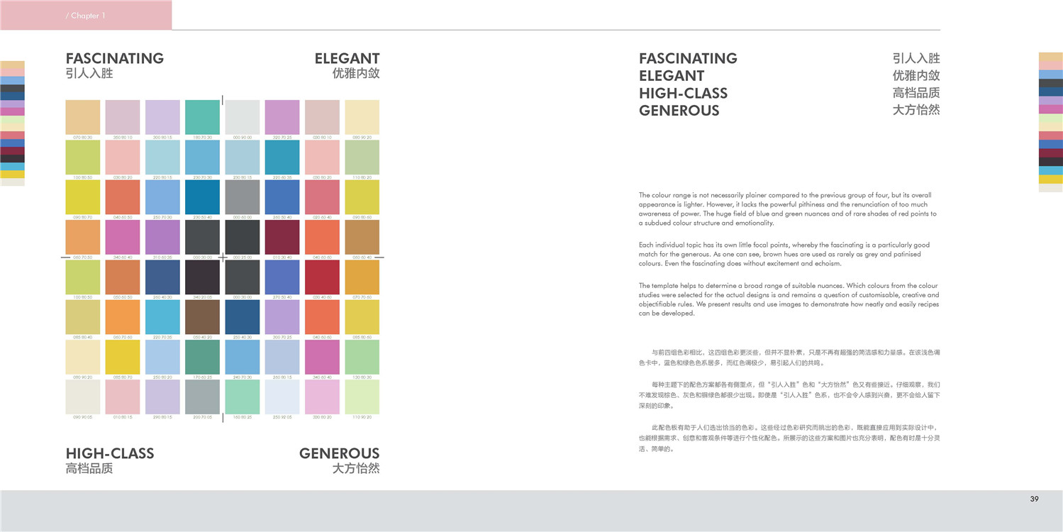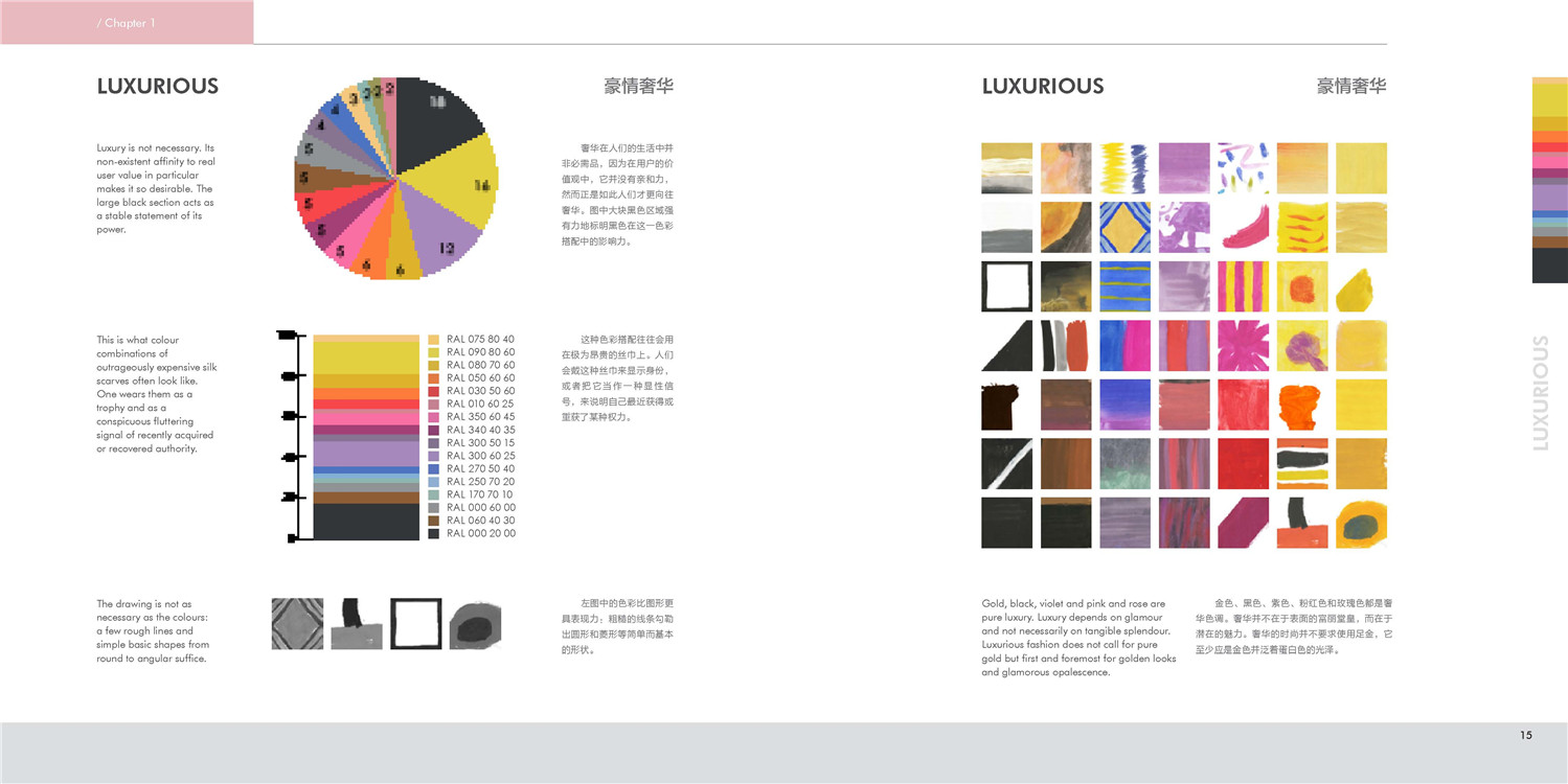 本書(shū)調(diào)查、收集和分析了參與對(duì)象對(duì)色彩的認(rèn)知,探討了色彩與圖案之間的關(guān)系,并以配色板為主要形式呈現(xiàn)出來(lái)。書(shū)中同時(shí)用圖片和文字來(lái)詳細(xì)闡釋了各種配色方案能實(shí)現(xiàn)的效果,并將每種方案劃分到具體的類(lèi)別中,以便讀者更好地理解和應(yīng)用書(shū)中的配色方案。