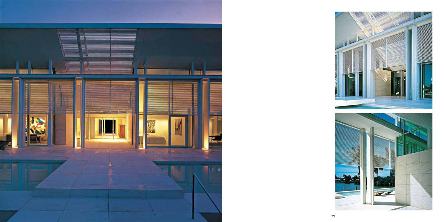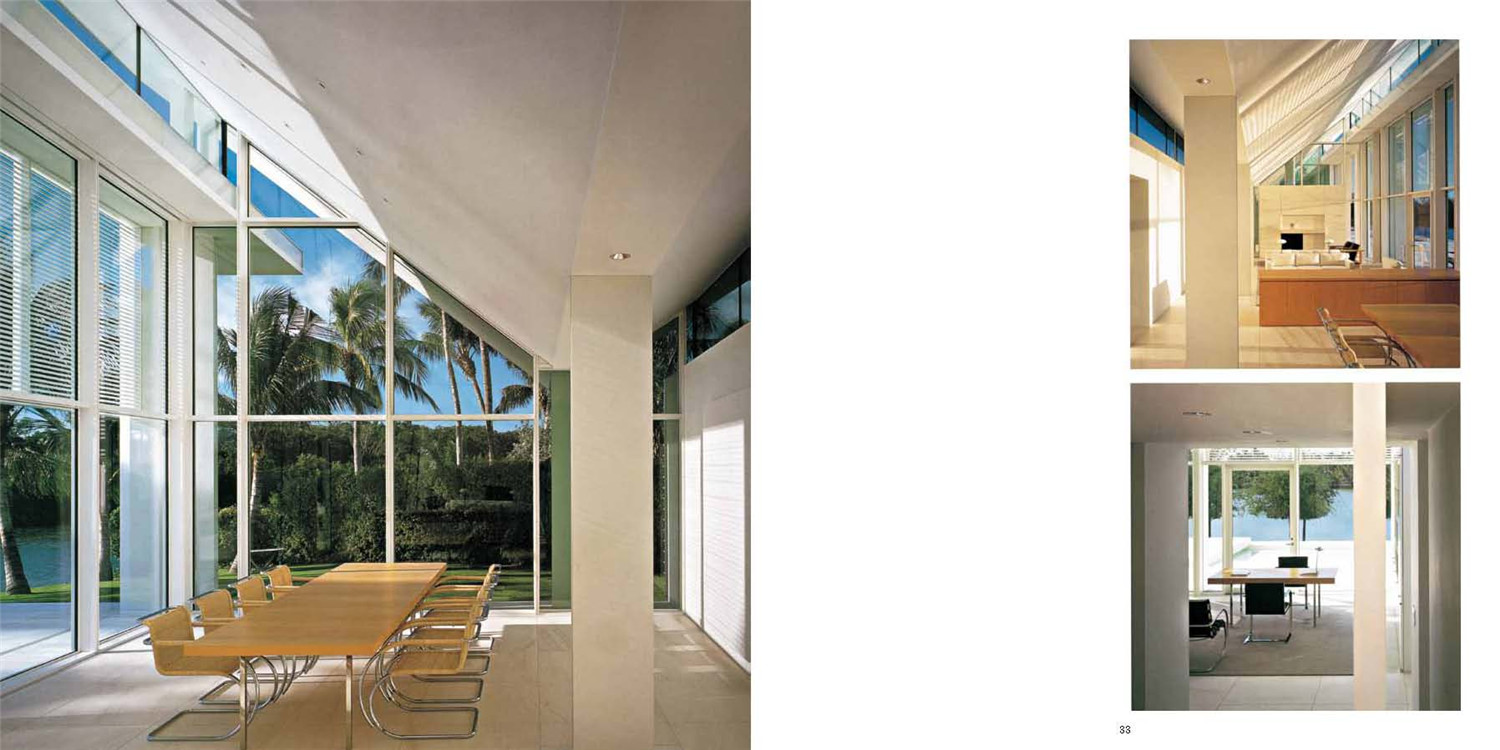 理查德·邁耶叢書(shū)共計(jì)6卷,收錄了理查德·邁耶以及邁耶工作室近50年來(lái)的全部設(shè)計(jì)作品。邁耶設(shè)計(jì)的產(chǎn)品都頗為簡(jiǎn)練,既包括居家設(shè)計(jì)也包括商用設(shè)計(jì)。他設(shè)計(jì)的作品最大的特點(diǎn)是永遠(yuǎn)有自己的特性而不是在風(fēng)格上受別人的影響而迷惑。由于其大膽的風(fēng)格和值得稱頌的忠誠(chéng),邁耶創(chuàng)造出頗為獨(dú)特的粗壯風(fēng)格。為了在展示方面做得更好,他將斜格、正面以及明暗差別強(qiáng)烈的外形等方面和諧地融合在一起。邁耶的作品以“順應(yīng)自然”的理論為基礎(chǔ),表面材料常用白色,以綠色的自然景物襯托,使人覺(jué)得清新脫俗,他還善于利用白色表達(dá)建筑本身與周圍環(huán)境的和諧關(guān)系。在建筑內(nèi)部,他運(yùn)用垂直空間和天然光線在建筑上的反射達(dá)到富于光影的效果,他以新的觀點(diǎn)解釋舊的建筑,并重新組合幾何空間。