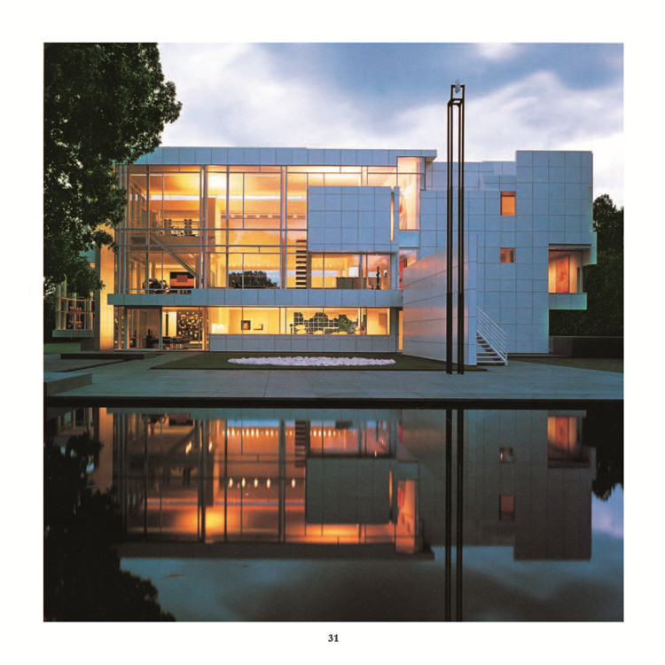 理查德·邁耶叢書共計(jì)六卷,收錄了理查德·邁耶以及邁耶工作室近50年來的全部設(shè)計(jì)作品。邁耶設(shè)計(jì)的產(chǎn)品都頗為簡練,既包括居家設(shè)計(jì)也包括商用設(shè)計(jì)。他設(shè)計(jì)的作品最大的特點(diǎn)是永遠(yuǎn)有自己的特性而不是在風(fēng)格上受別人的影響而迷惑。由于其大膽的風(fēng)格和值得稱頌的忠誠,邁耶創(chuàng)造出頗為獨(dú)特的粗壯風(fēng)格。為了在展示方面做得更好,他將斜格、正面以及明暗差別強(qiáng)烈的外形等方面和諧地融合在一起。邁耶的作品以“順應(yīng)自然”的理論為基礎(chǔ),表面材料常用白色,以綠色的自然景物襯托,使人覺得清新脫俗,他還善于利用白色表達(dá)建筑本身與周圍環(huán)境的和諧關(guān)系。在建筑內(nèi)部,他運(yùn)用垂直空間和天然光線在建筑上的反射達(dá)到富于光影的效果,他以新的觀點(diǎn)解釋舊的建筑,并重新組合幾何空間。