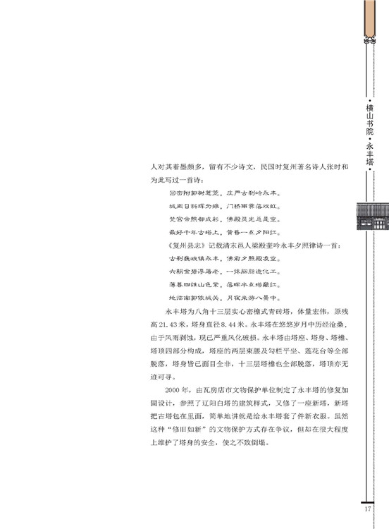 本書將作者七年的測繪成果加以整理、遴選、完善,這些測繪圖是大連理工大學(xué)建筑學(xué)院師生們辛勞和汗水的結(jié)晶,是一份珍貴的資料集,展示了橫山書院·永豐塔整體與局部的結(jié)構(gòu)、造型與細(xì)部,盡可能多地保留了橫山書院·永豐塔測繪的原始數(shù)據(jù)。本測繪集不僅可為古建筑研究愛好者所用,也可以為從事古建筑修復(fù)、保護(hù)與傳統(tǒng)風(fēng)格設(shè)計(jì)的建筑師們提供較為豐富的資料,對我國大連地區(qū)歷史文化遺產(chǎn)的保護(hù)具有深厚意義。