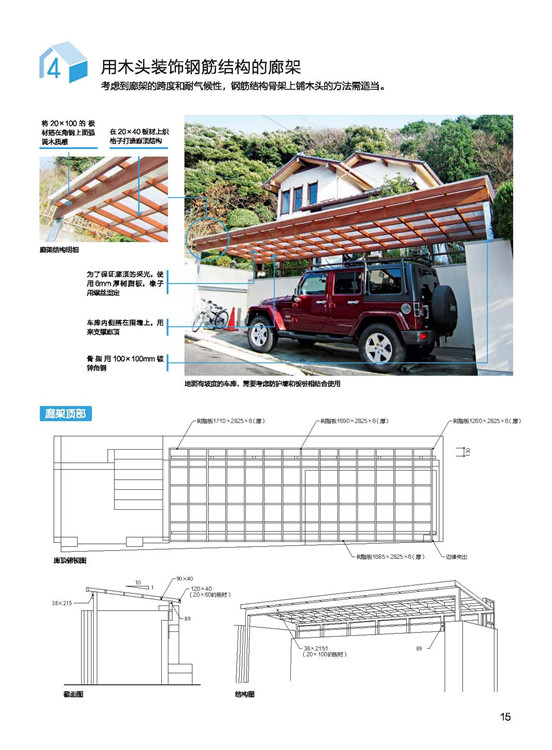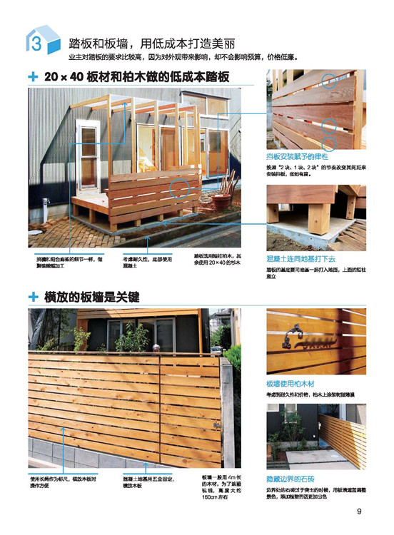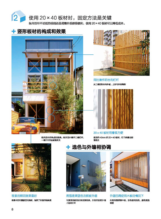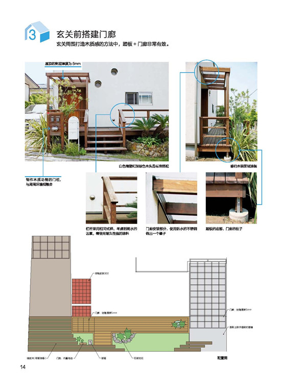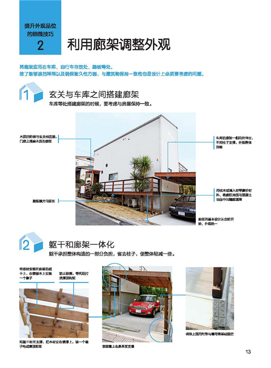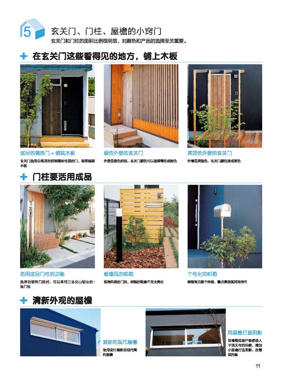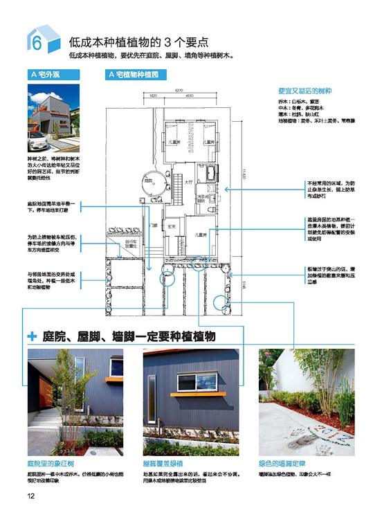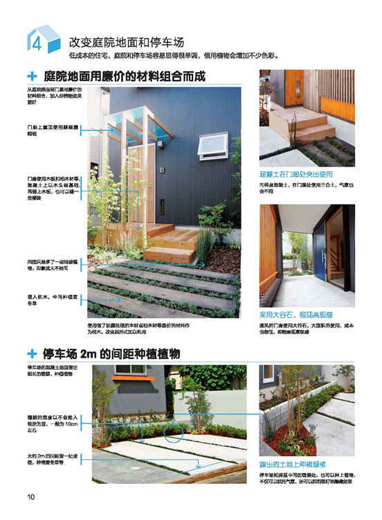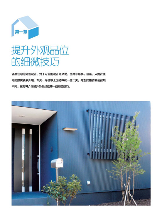房屋的外構與外觀,向日本設計事務所學習做到完善。在屋頂與外部墻面的結構介紹?中,講述屋頂與墻面材質的設計性、機能性。每種材質利用表格陳列對比,一目了然!?在陽臺的形狀和素材上下功夫成品的鋁框+樹脂板圍欄是融入感很強的設計;在庭院規(guī)劃上,就算只有一棵樹,委托人的滿意度也會大大提升!綠色植物不但能美化環(huán)境,更能調節(jié)心靈,與生活質量有著緊密的關聯。在將介紹,該如何有效率地在道路、陽臺、露臺、窗面做綠化。?