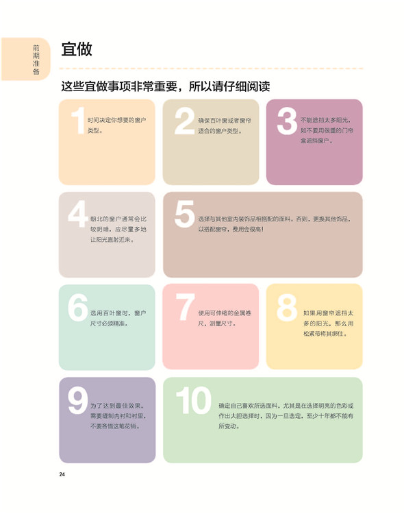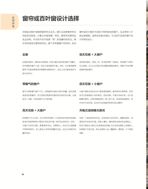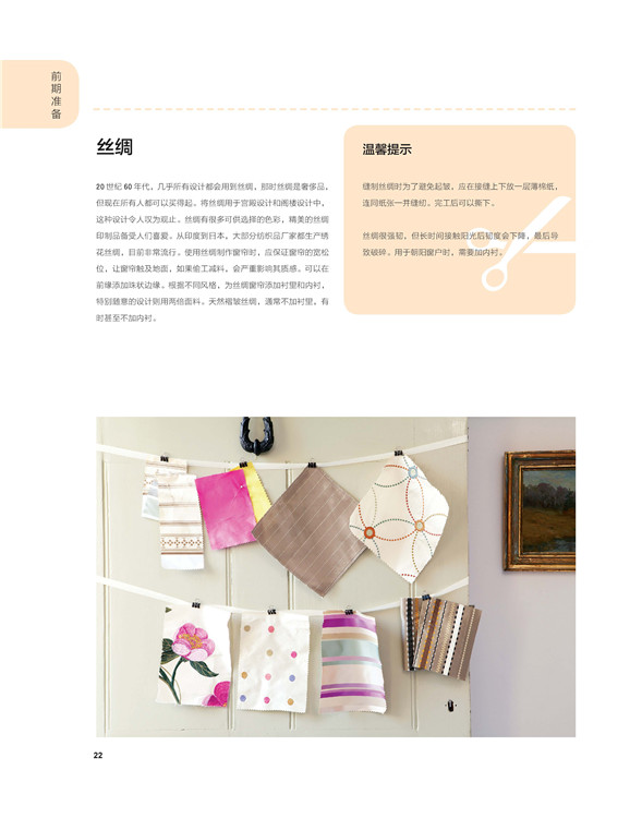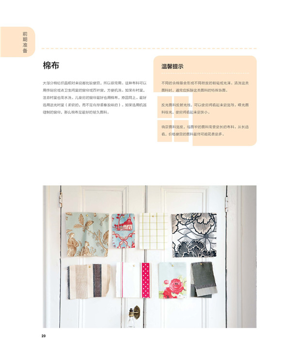 第一章是關(guān)于著手準(zhǔn)備的內(nèi)容,其中包括制訂初步的行動(dòng)方案和色彩方案為不同的窗戶選擇合適的窗簾風(fēng)格,以及收集各種窗飾不料及如何正確使用的相關(guān)信息。