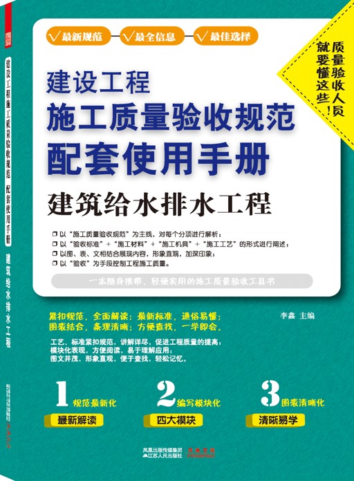 本書是《建設(shè)工程施工質(zhì)量驗(yàn)收規(guī)范配套使用手冊(cè)》系列之《建筑給水排水工程》,共有七章,內(nèi)容包括:室內(nèi)給水、排水系統(tǒng),室內(nèi)熱水供應(yīng)系統(tǒng),衛(wèi)生器具安裝,室內(nèi)采暖系統(tǒng),室外給水、排水及供熱管網(wǎng)安裝,建筑中水系統(tǒng)及游泳池水系統(tǒng),供熱整裝鍋爐及輔助設(shè)備安裝。本書內(nèi)容豐富,層次清晰,可供相關(guān)專業(yè)人員參考學(xué)習(xí)。