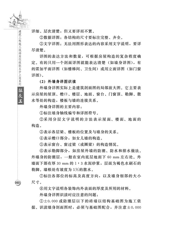 本書將抹灰工上崗分為五步:第一步——確保上崗資格;第二步——遵守行業(yè)規(guī)范;第三步——熟悉材料工具;第四步——掌握施工技術(shù);第五步——保障施工安全。