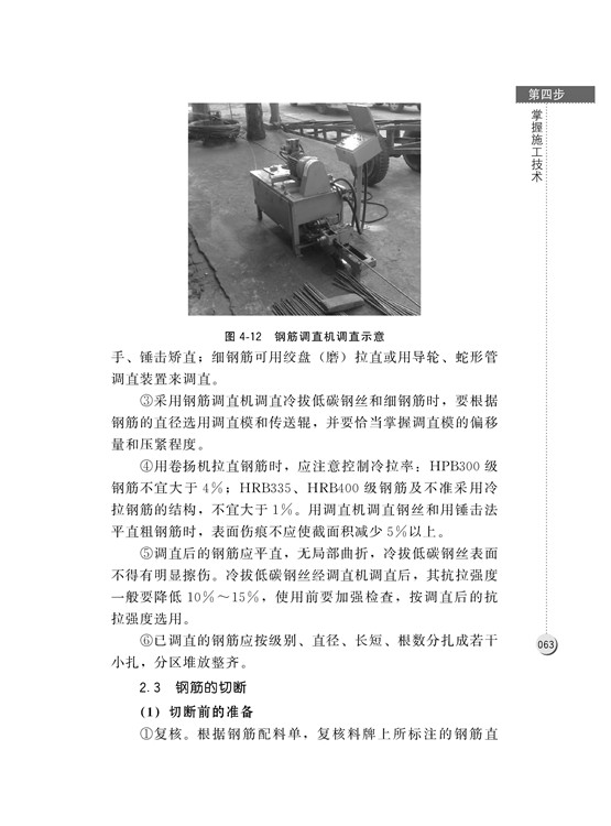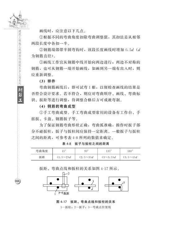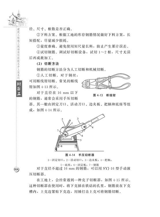 本書以住房和城鄉(xiāng)建設(shè)部建筑工程施工職業(yè)技能標(biāo)準(zhǔn)為編寫依據(jù),將鋼筋工上崗分為五步:第一步———確保上崗資格;第二步———遵守行業(yè)規(guī)范;第三步———熟悉材料工具;第四步———掌握施工技術(shù);第五步———保障施工安全。