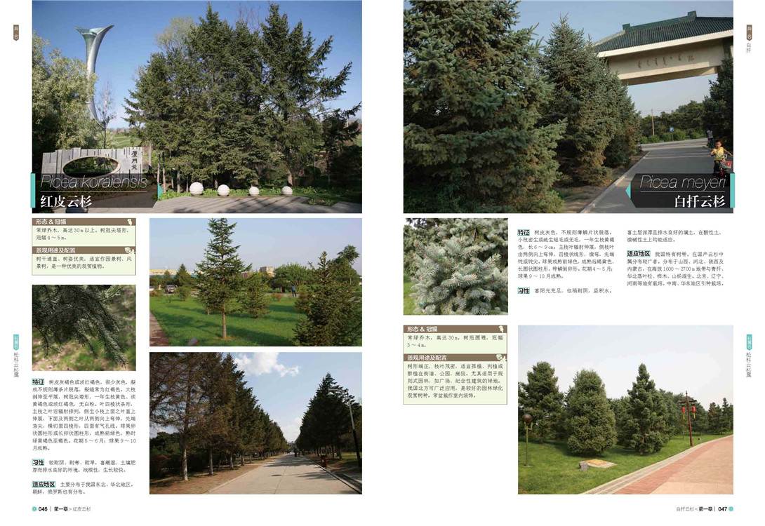 每一種植物的介紹,重點(diǎn)突出該植物的景觀特色和應(yīng)用效果,方便工程設(shè)計(jì)和采購(gòu)、施工需要,如成熟或較好景觀效果時(shí)的植物高度、冠幅、樹(shù)冠形態(tài)等。同時(shí)配合文中,提供了反映該植物的株型、花、葉特寫(xiě)以及園林中典型的應(yīng)用圖片。