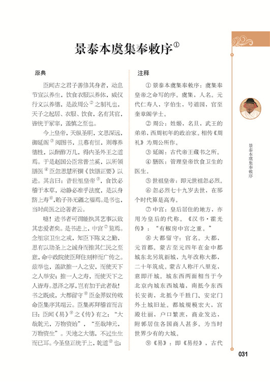 “國以民為本,民以食為天”,可見飲食對于人類的重要性。隨著人們生活水平的日益提高,人民群眾越來越關(guān)注營養(yǎng)養(yǎng)生,使自己生活得更健康、更長壽?!笆⑹朗乘幧牛瑖鴮幦丝到 ?,進(jìn)食藥膳是許多人追求健康的選擇。然而新時期的藥膳,只是沿用個別古代膳方,體系不贍,有些甚至尚未達(dá)到古人的藥膳食用水平。《飲膳正要》是元代忽思慧所作的一部膳食專著,對當(dāng)世意義顯著,它能夠幫助人們深入了解藥膳的藥用性和食用性,掌握藥膳的食用方法和規(guī)律,讓民眾的藥膳服食更科學(xué)更有效。