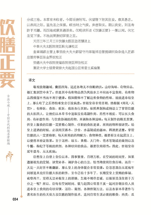 本書《古法今觀——中國古代科技名著新編 飲膳正要》除了保留典籍原貌,更加入了注釋和譯文,把原典中晦澀難懂的內(nèi)容進(jìn)行了現(xiàn)代文的翻譯,使讀者能夠無障礙的輕松閱讀,并在此基礎(chǔ)上引入現(xiàn)代營養(yǎng)學(xué)知識,把古時一些囿于條件限制未能全面了解的知識和錯誤的觀念進(jìn)行了全面正確的闡述,使讀者既能了解古人對食物營養(yǎng)的追尋,更能利用更先進(jìn)的手段尋找出替代品和更優(yōu)化的食品,使?fàn)I養(yǎng)學(xué)知識更豐富,更能為今人強(qiáng)身健體、驅(qū)除疾病所用。