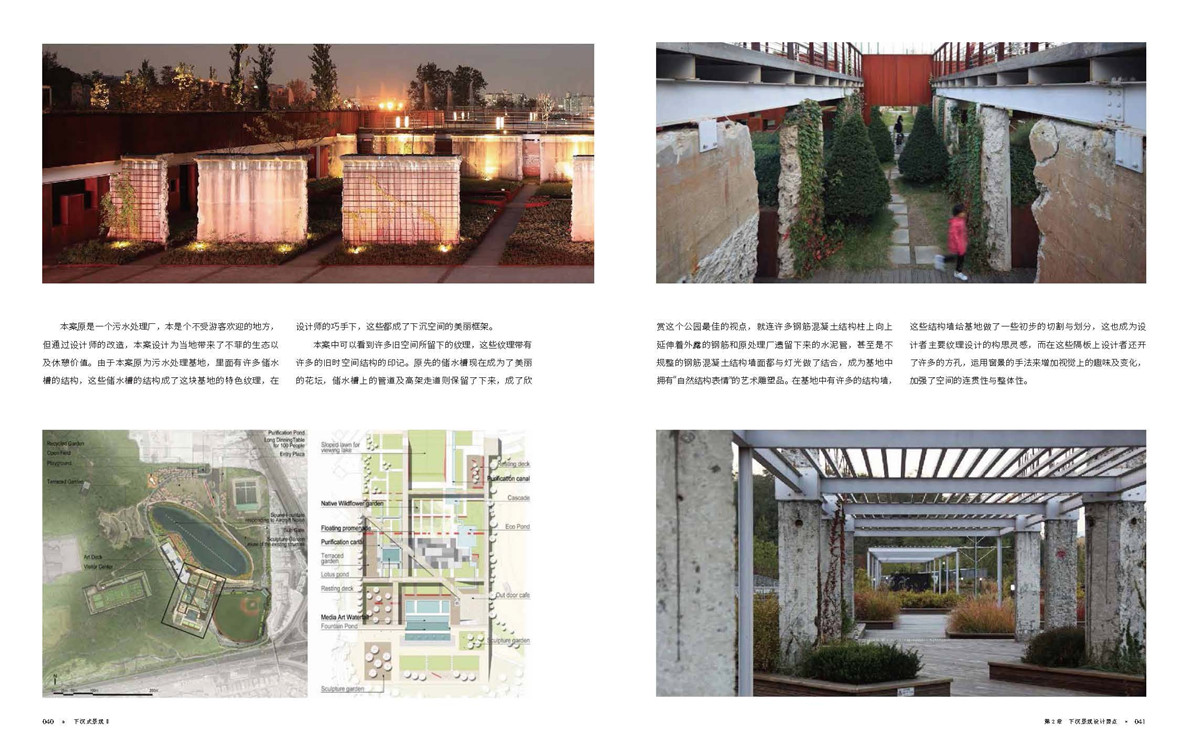 本書共分為三部分:第一,下沉式景觀的歷史發(fā)展、基本概念及設計原則;第二,與普通地面景觀相比,下沉式景觀設計時需要注意的問題;第三,根據(jù)不同用途,不同類型的下沉空間景觀設計案例精析。