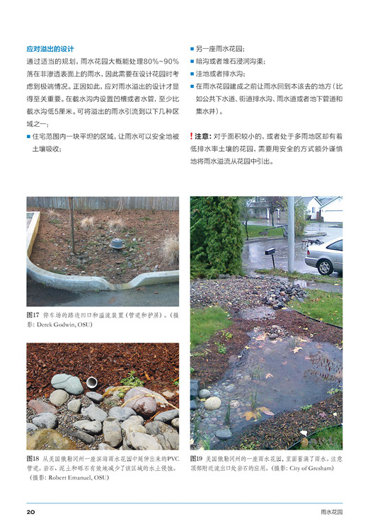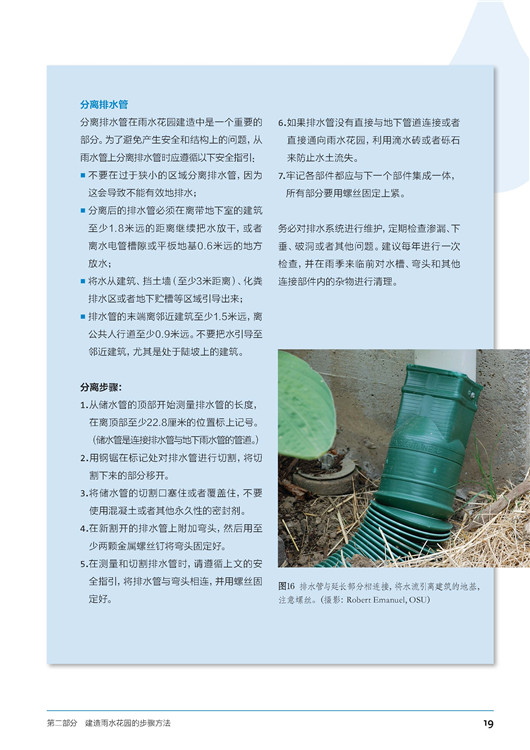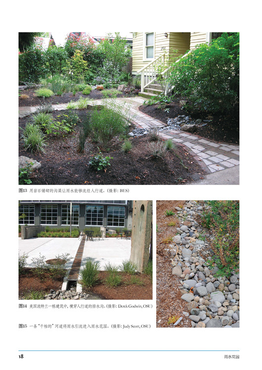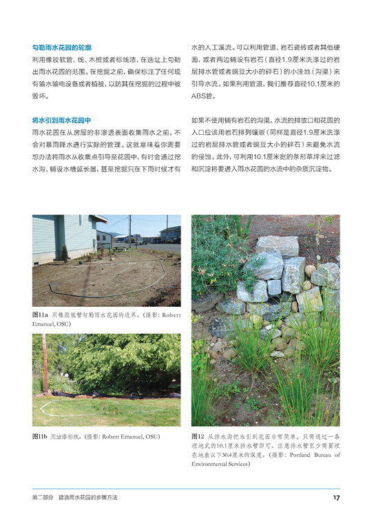本書(shū)分成三大部分:第一部分主要講述了雨水花園的概念。第二部分主要介紹雨水花園建造與維護(hù)方法等,包括從選址到土壤評(píng)估再到種植,最后到管道引流等方面。第三部分通過(guò)國(guó)內(nèi)外優(yōu)秀項(xiàng)目的展示,結(jié)合精美的圖片和詳細(xì)的描述性文字,讓讀者能在實(shí)際成品中進(jìn)一步了解雨水花園的作用。