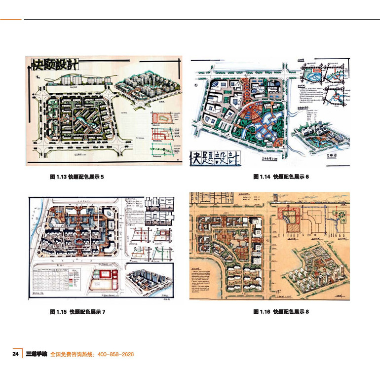 該書主要特點(diǎn)如下: 1.題目類型豐富、全面,避免讀者在尋找快題題目上浪費(fèi)時間和精力; 2.快題方案量大而優(yōu)秀,為讀者練習(xí)快題提供了范本; 3.評語精辟而簡潔,一針見血地指出各方案的優(yōu)缺點(diǎn),避免讀者盲目模仿錯誤的方案,也使讀者在日后的設(shè)計(jì)中能避免犯類似的錯誤。