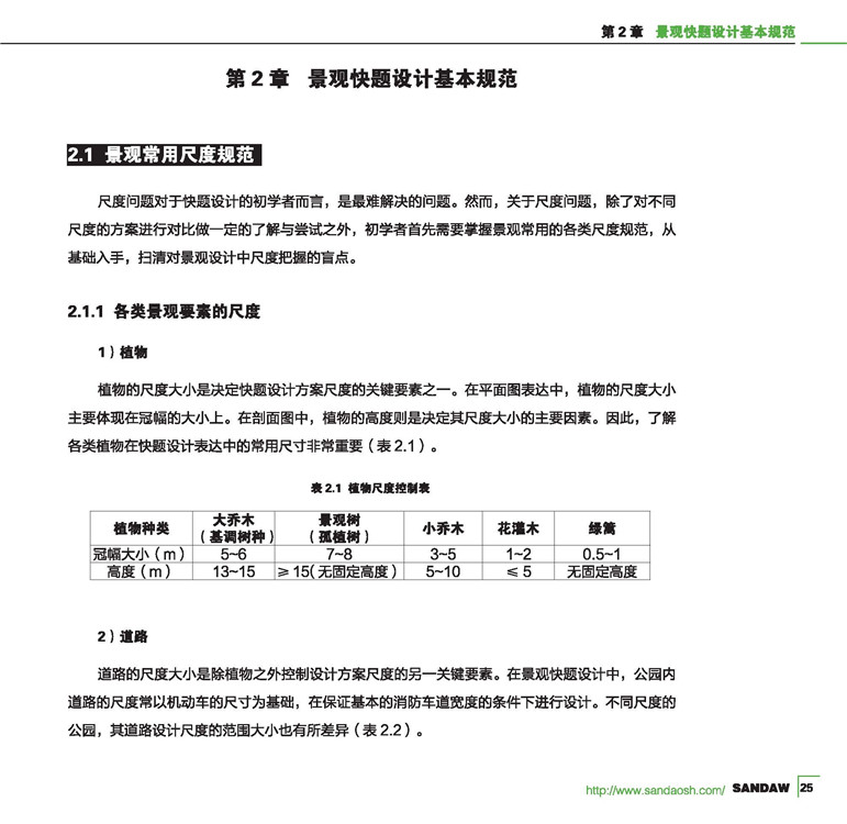 2.1 景觀常用尺度規(guī)范