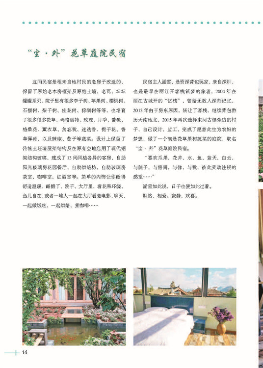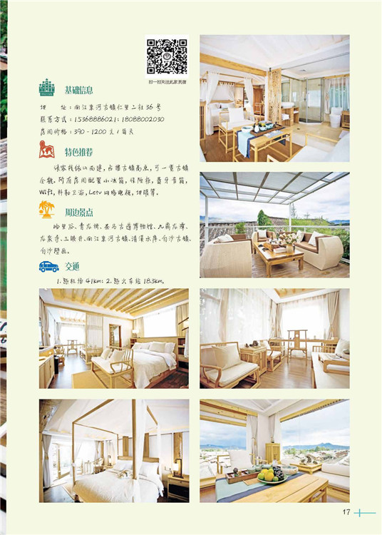 精心甄選35家民宿案例,遍布大江南北,風(fēng)格迥異,各具特色。每個案例都有介紹民宿老板的個人經(jīng)歷、感受,談及心中最美的情懷。每個案例中都有路線、周邊景點推薦,民宿詳細的介紹及價格說明。還有二維碼推薦,感興趣一掃即可了解、預(yù)定。