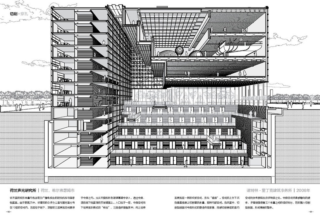 建筑師在建筑設(shè)計(jì)的過程中或是想細(xì)致地了解一座建筑,剖面圖就提供了這一途徑,沒有更好。剖面的綜合性特點(diǎn)使其具有舉足輕重的地位,本書中介紹的一系列對(duì)建筑剖面的系統(tǒng)分類方法,來幫助讀者理解建筑的復(fù)雜性,也更體現(xiàn)了這種舉足輕重的地位。
