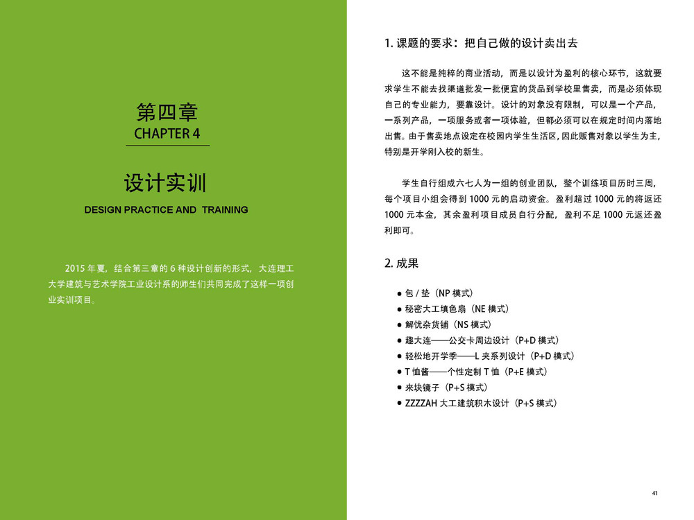 作者將本校工業(yè)設(shè)計專業(yè)的創(chuàng)業(yè)實訓(xùn)項目給大家一一做講解。從項目策劃、市場調(diào)研、具體實施過程、項目創(chuàng)業(yè)取得的成果及學(xué)生做完項目后取得的寶貴經(jīng)驗。這項實訓(xùn)項目的內(nèi)容利于讀者借鑒經(jīng)驗。