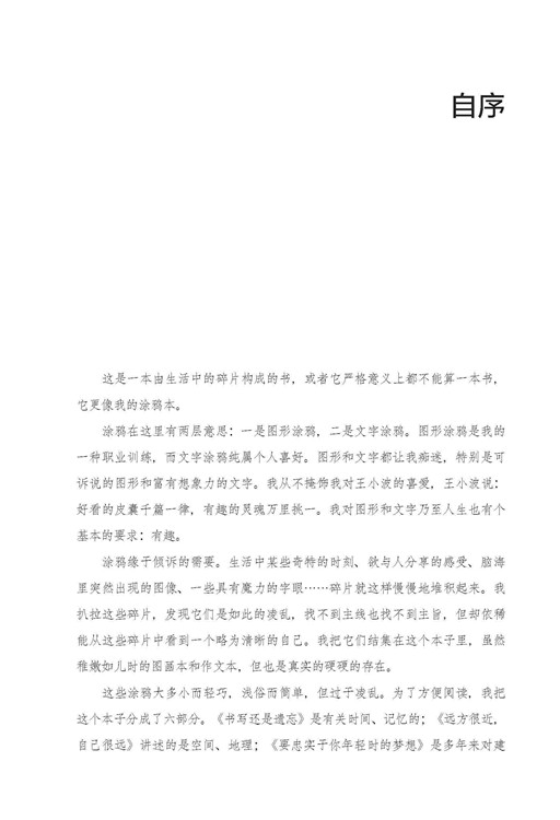 這是一本由生活中的碎片構(gòu)成的書,或者它嚴(yán)格意義上都不能算一本書,它更像我的涂鴉本。