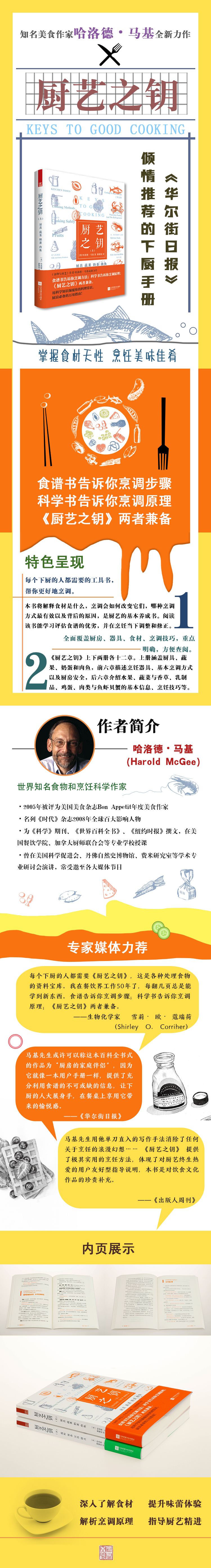 《廚藝之鑰》并不是食譜,而是為了解釋食物是什么、烹調(diào)是如何改變食物的,以及最佳的烹調(diào)方式與原因。本書(shū)就像導(dǎo)航手冊(cè),帶領(lǐng)下廚者優(yōu)游自得地航行在這片迅速擴(kuò)張的食譜之海,安全抵達(dá)美味佳肴的彼岸。