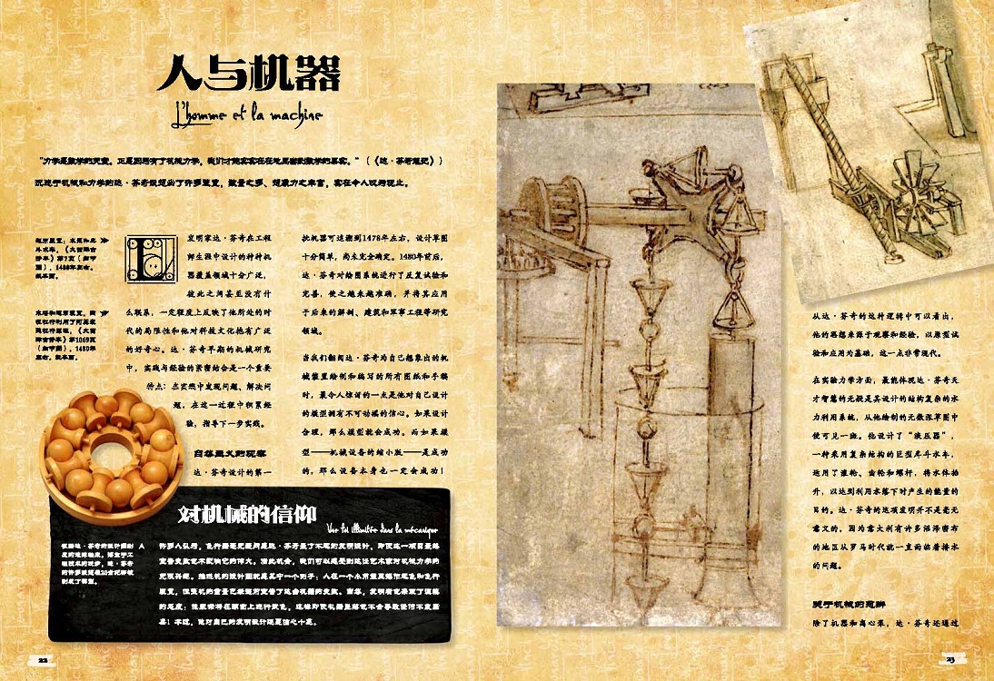 本書著重介紹了達·芬奇富有遠見的藝術和發(fā)明,展現了達?芬奇在發(fā)明和藝術創(chuàng)作過程中充滿想象力的一面。本書收錄了300多份珍貴插圖和手稿,其中包括達·芬奇致盧多維科·斯福爾扎的信、古抄本中的概念圖和設計圖、天文學圖紙和伊莫拉城市平面規(guī)劃圖等。從中可以看出這位大設計師探索宇宙萬物運行法則的雄心壯志。書中對達·芬奇的各種手稿進行了展示和剖析,讀者可以從中得到靈感、獲取知識。