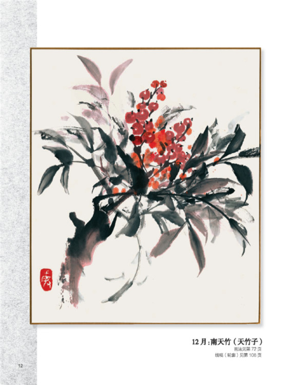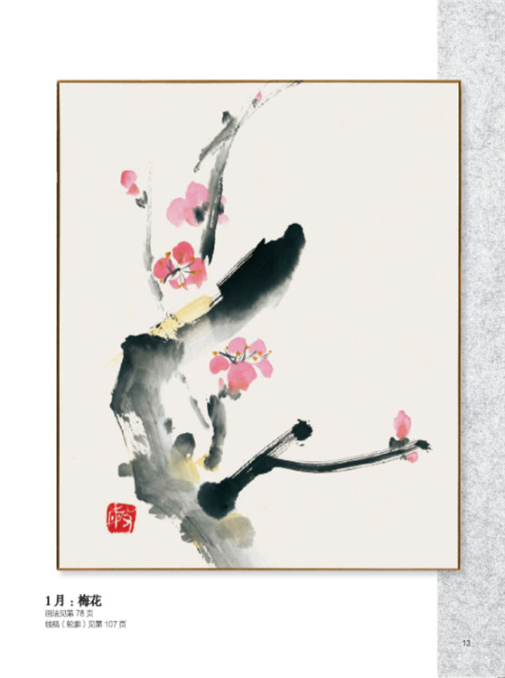 本書是一本適合水墨畫初學(xué)者的繪畫入門書,本書精選了全年12個月份中具有代表性的12種花卉。本書共分為三個部分。第一部分展示了12種花卉完成之后的作品;第二部分講解了水墨畫的技巧和使用工具;第三部分對12種花卉的繪畫技法和構(gòu)圖技巧進行分步驟講解。