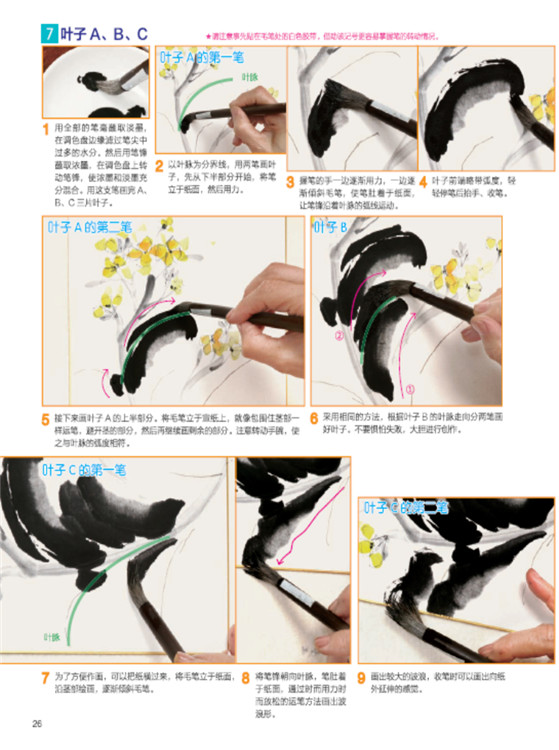 在本書中,介紹了一種不勾畫輪廓,直接用墨調(diào)和顏料進行繪畫的創(chuàng)作方法。在這種畫法中,尤其注重運筆。靈活運用不同的筆勢,充分進行大膽創(chuàng)作。用筆身著淺色,筆尖處著深色或直接著墨,使一支筆之中包含濃度、彩度各不相同的多種層次。這樣下筆時,就會產(chǎn)生濃淡漸進和混色等多種效果,描繪出更具感染力的線條。此外,根據(jù)毛筆的含水量以及下筆速度、力度的不同,所生的暈染、飛白等效果也會令人過目不忘。