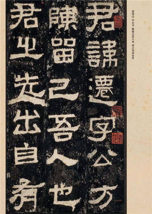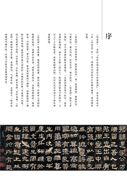 《張遷碑》個(gè)性風(fēng)格突出,屬渾厚拙樸一類。道勁雄強(qiáng),厚重樸拙,氣勢(shì)開張,骨力洞達(dá),樸實(shí)無華,高古脫俗。《張遷碑》的刻工并不精細(xì),對(duì)書丹有明顯的改造痕跡,一些筆畫鑿刻得不到位,甚至有漏刻的現(xiàn)象。由于工匠的二度加工,該碑既存原有書丹成分,又加上了工匠的改造,雖略顯粗率拙陋,但卻在無形中增加了質(zhì)樸率真的情趣。